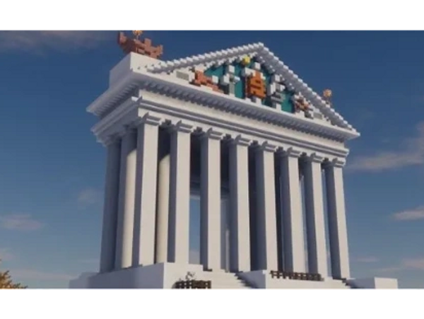 Bored on half term and struggling to revise, especially the buildings in the Imperial Image section of our syllabus, I decided to play Minecraft, with the idea of building some of the buildings from Rome so I could learn more about their construction, grandeur, and most importantly their symbolism. Getting on to a server with my friend, we started this undertaking. Not realizing how long it would take us, for the whole week of half term we worked away, hiring people to collect materials we needed, buying them off of other players and finally, researching and building the Temple.